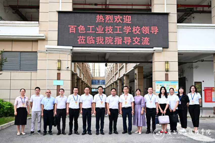(广西轻工技师学院网 招生就业办公室讯 撰稿、摄影:钟攀龙)2025年6月17日,百色工业技工学校交流学习团在常务副校长苏健同志的带领下,一行9人抵达广西轻工技师学院。此次交流聚焦教师队伍建设、校园文化建设、学生管理以及教学管理等多个关键领域,百色工业技工学校期望通过对我院经验的深入学习,为自身发展注入新活力。