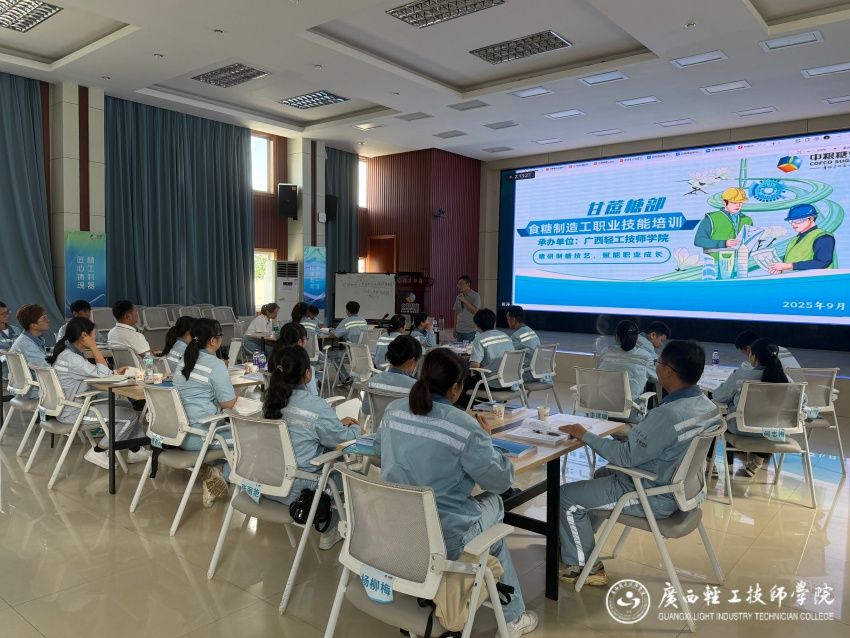 (广西轻工技师学院网 培训科讯 撰稿:赵子棋 摄影:宋国魂、赵子棋)2025 年9月1日上午,广西轻工技师学院与中粮集团有限公司合作举办的2025年骨干员工技能提升培训班开班仪式,在中粮集团崇左生产基地培训中心隆重举行。我院副院长梁坚、培训科科长樊永林、培训科副科长蓝浩宁、食品技术系党支部副书记张华清、崇左市职业技能鉴定中心主任李体璜、中粮糖业股份有限公司人力资源部员工关系部经理李铮、中粮集团甘蔗糖部副总经理(主持工作)蒙军、中粮集团甘蔗糖部人事部经理李秀兰、中粮集团甘蔗糖部生产技术部经理梁幼飞出席本次开班仪式。