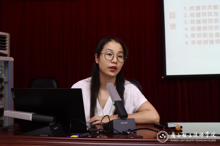 学院德育研究室副主任杨英樱要求新进人员坚守职业道德、严守师德底线,关爱学生、为人师表,以高尚的师德师风和扎实的专业素养为学生成长成才保驾护航。