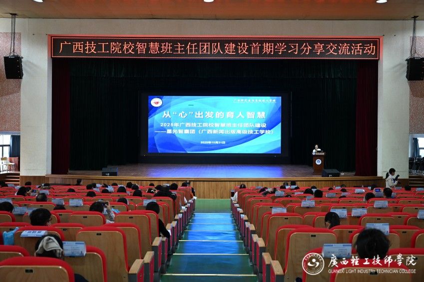 (广西轻工技师学院网 学生工作和保卫科讯 撰稿:刘晓阳 摄影:新媒体中心)为深化技工院校班主任队伍专业化建设,探索心智教育在班级管理中的创新应用,2025年10月31日,由自治区技工教育研究室主办,广西轻工技师学院与广西技工学校研究会联合协办的“广西技工院校智慧班主任团队建设学习分享交流活动(首期)”在广西轻工技师学院石柱岭校区成功举办。本次活动以“技能照亮前程 智慧点亮心灯”为主题,全区35所技工院校“智慧班主任团队”核心成员近170人参加,共探班级管理与心智教育新路径,活动兼具理论深度与实践指导性。