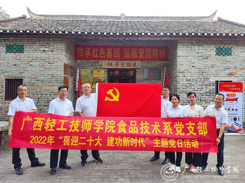 (广西轻工技师学院网 食品技术系讯 摄影:周丽东、袁德华)2022年是中国共产党成立101周年,6月28日上午,食品技术系党支部全体党员、入党积极分子一行7人到南宁市良庆区缸瓦窑村林景云烈士故居开展“喜迎二十大 建功新时代”主题党日活动暨现场教学。
