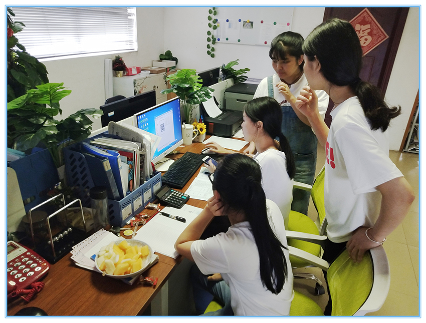 14、15界计算机在广西民乐喷画有限公司实习照片 15卢阳萍-15刘海华-15李海霞-14梁杰梅(从右至左)